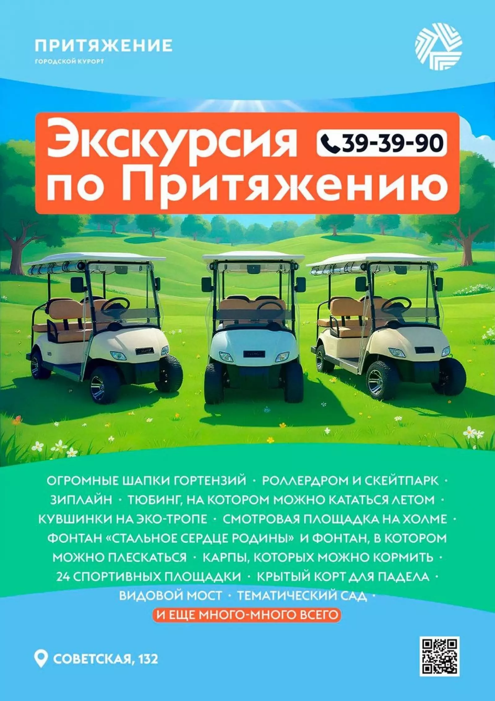 Экскурсия (тур) «Притяжение» и я» представляет собой обзорную экскурсию для детей и взрослых по городскому курорту «Притяжение» и его главным достопримечательностям. Городской курорт «Притяжение» – это совершенно новое круглогодичное мультифункциональное парковое пространство с рекреационными, развлекательными, спортивными, общественно-деловыми объектами. Инициатором и главным инвестором столь масштабного и уникального проекта является Магнитогорский металлургический комбинат.