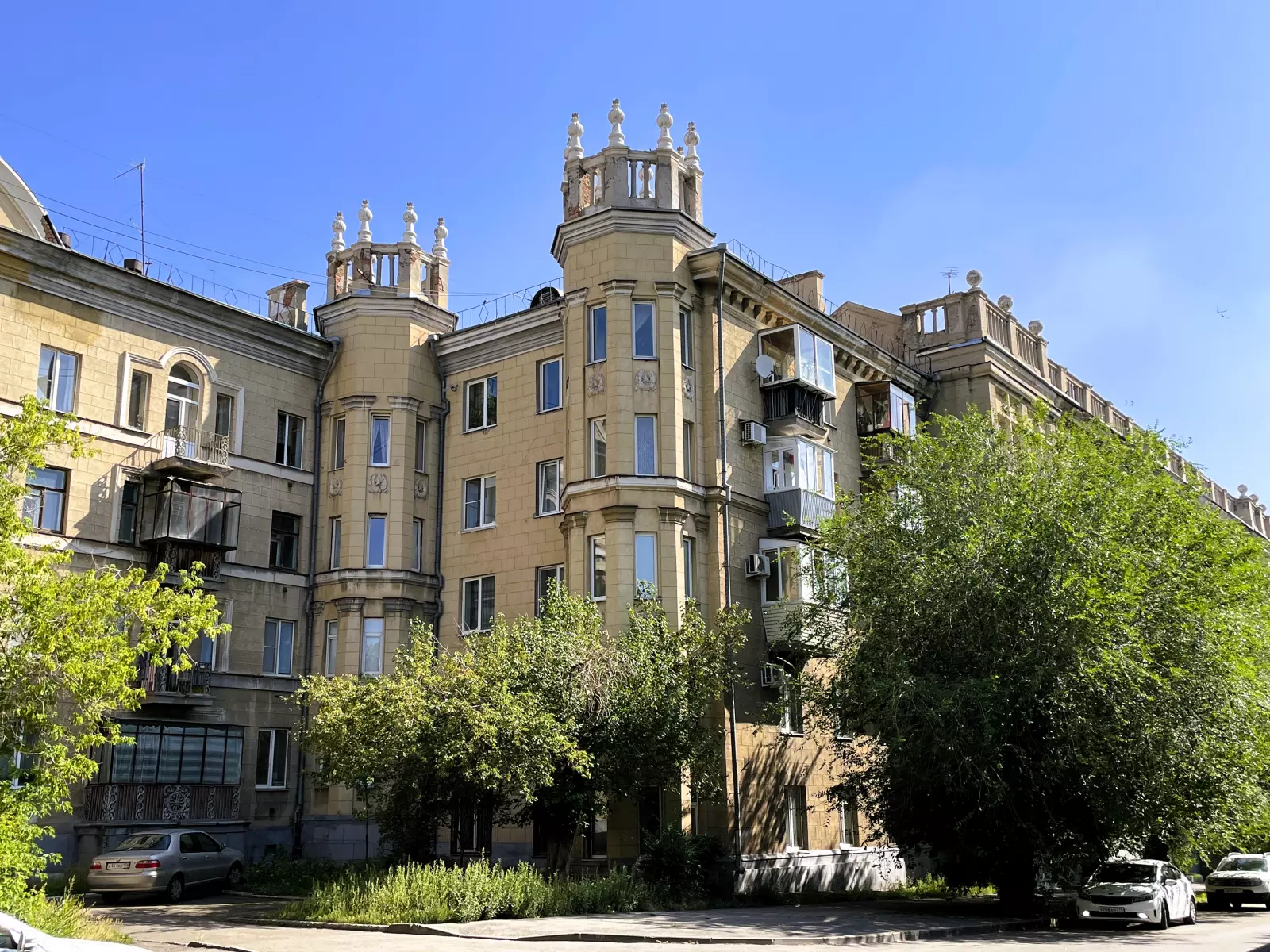 Жилые дома на проспекте Металлургов вместе с одноименным сквером составляют знаменитый парадный ансамбль, построенный по канонам «сталинской» архитектуры – это один из главных архитектурных символов Магнитогорска.