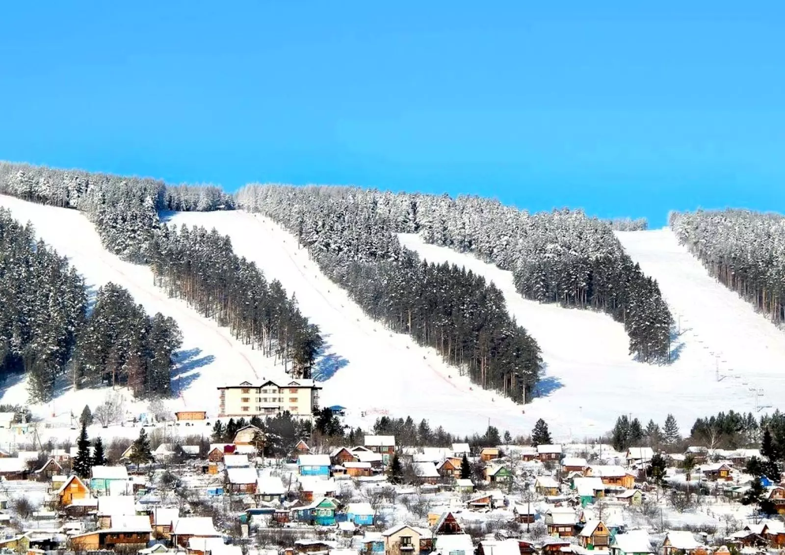 Горнолыжный курорт «Мраткино» находится в черте города Белорецка Республики Башкортостан (в зоне соснового леса на берегу реки Белой).