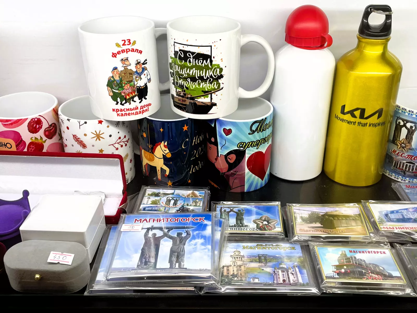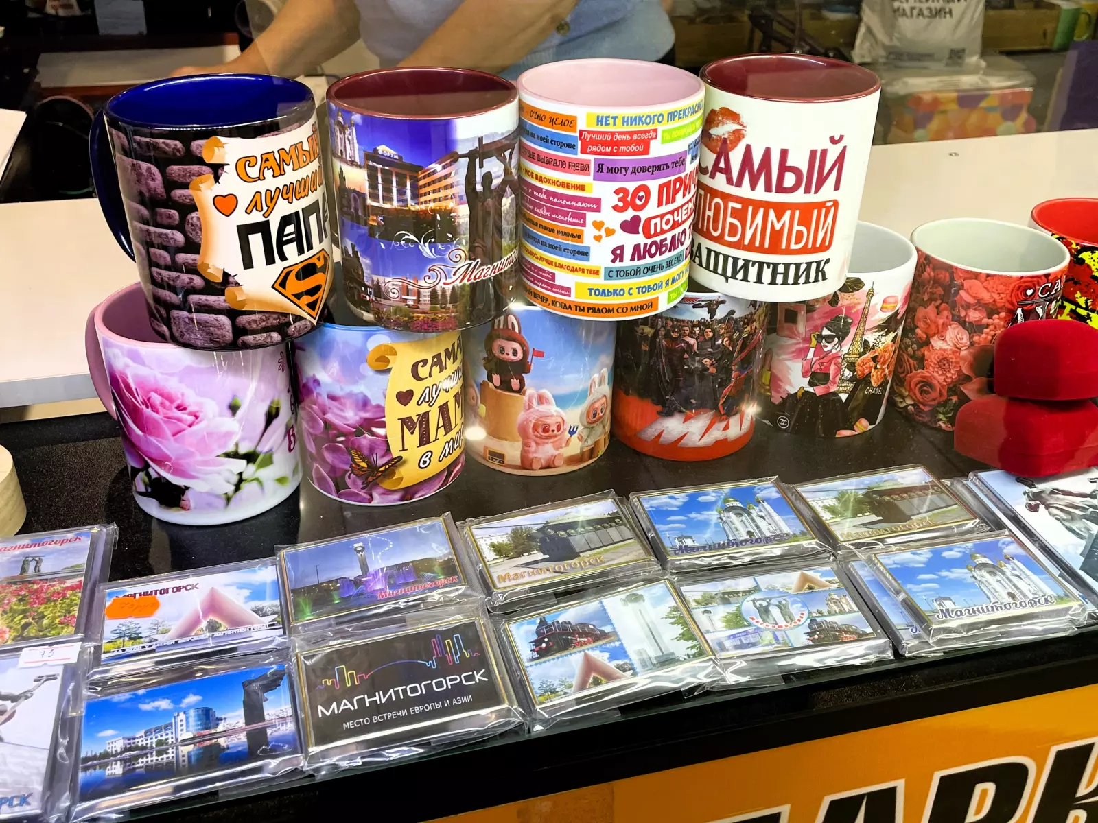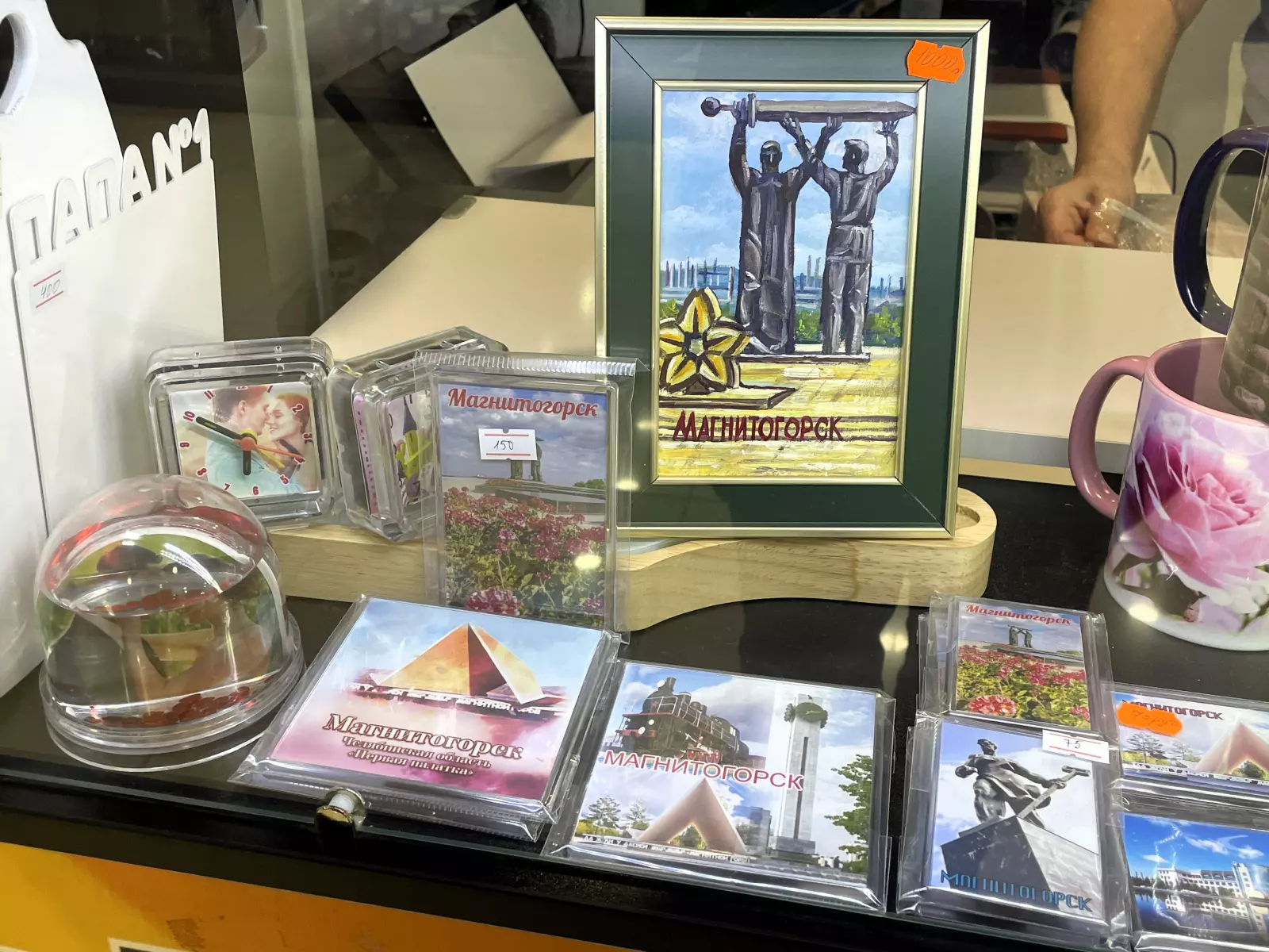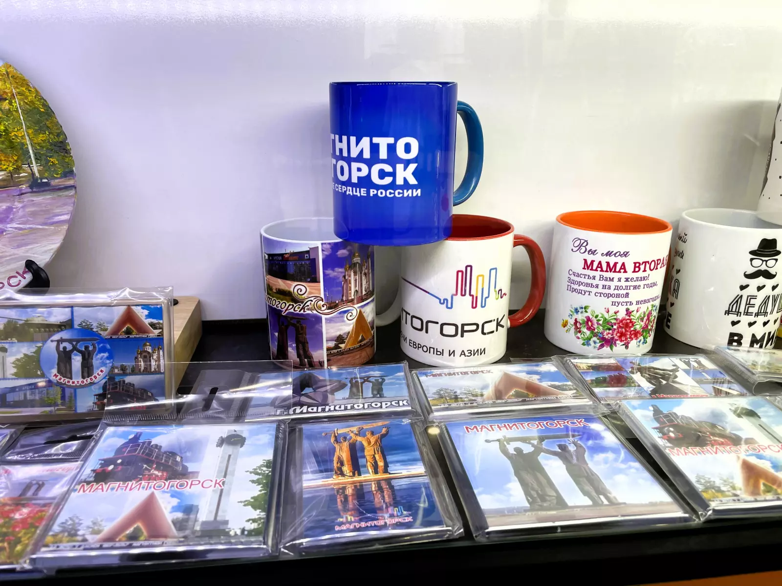 В ассортименте магазинов следующая сувенирная продукция с видами и символикой города Магнитогорска: